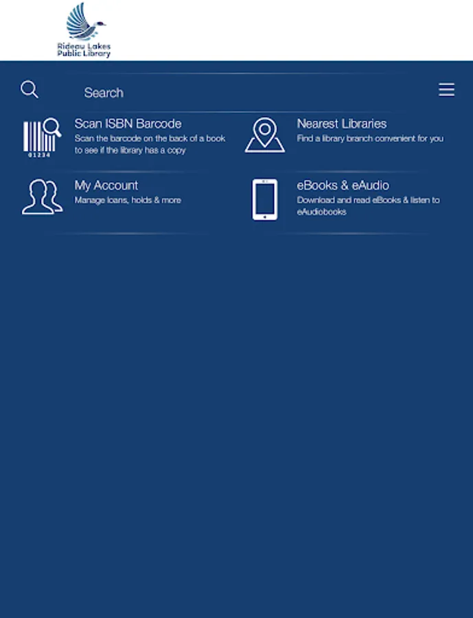 Access Rideau Lakes Public Library on the go from your Android phone or tablet. Manage your account, search the catalogue, renew and reserve books, dvds and more.