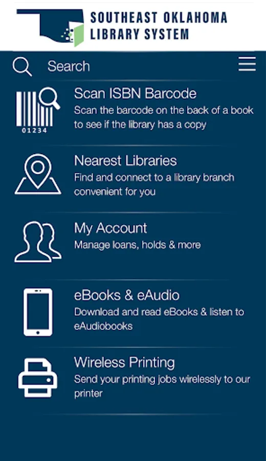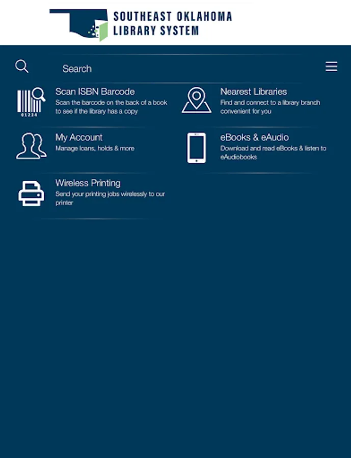 Check out what’s here! With the SEOLS app, you can access any of our libraries in Southeastern Oklahoma at any time! Search our catalog, place holds, renew your material, find your local branch and discover upcoming events and programs for all ages. You can also download our eBook/eAudio collection, use the Library’s digital resources and even stream movies and videos directly from your device. Check the online calendar to view events by location, date or topic, and find detailed information about our neighborhood libraries.