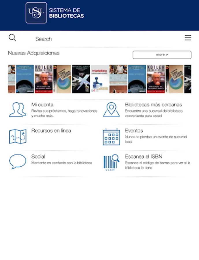 Accede más fácilmente a Bibliotecas USIL desde tu Smartphone o Tablet Android. Puedes acceder a tu cuenta, hacer búsquedas del catálogo, reservar y renovar libros.