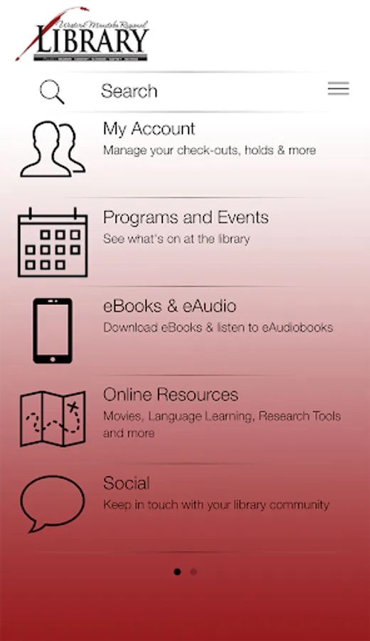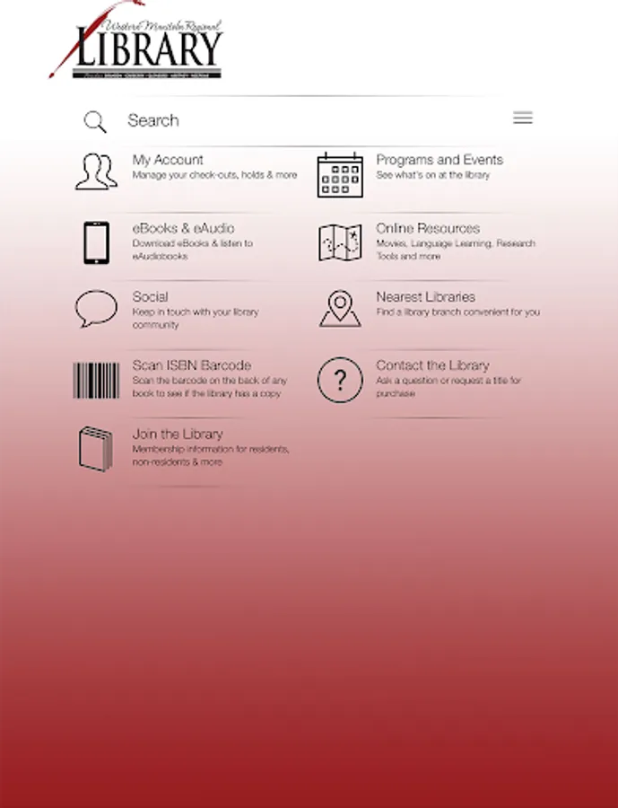 Take the library with you wherever you go! Search the catalogue for books, audiobooks, DVDs and more. Access your account. See borrowed items and when they are due. Place holds on items. Renew borrowed items. Explore eBooks, eMagazines, eMusic, eMovies, and eAudiobooks. Find your nearest library branch and view hours. Connect with us on Facebook, Twitter, and Instagram. Scan the ISBN of any book in a store to see if it is available to borrow from the library.