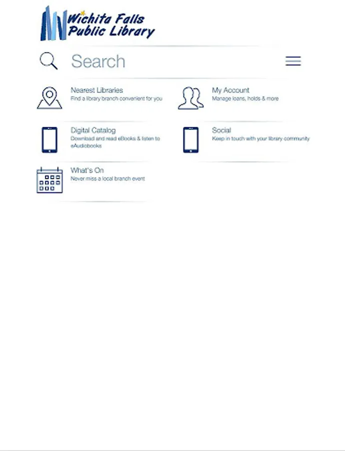 Access Wichita Falls Public Library from your Android phone or tablet. Manage your account, search the catalogue, renew and reserve books.