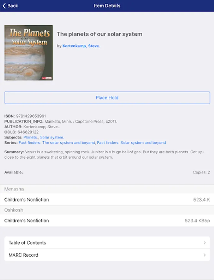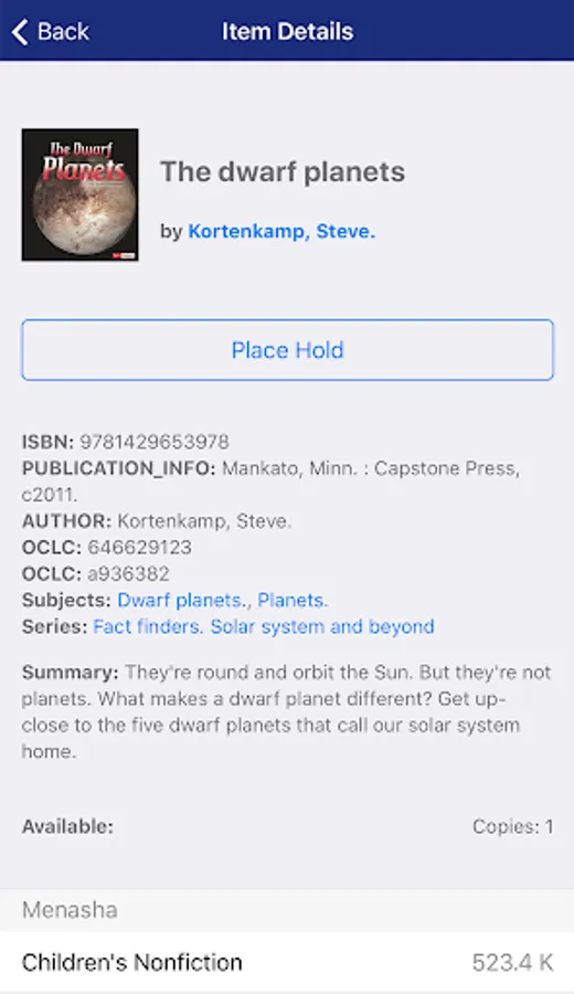 Winnefox Mobile makes it easy to access 29 public libraries within the Winnefox Library System on the go! Search our catalog, download e-materials, and manage your account instantly with your Android device. Top Features:Search the Winnefox Library Catalog: Search for items by Title, Author, Subject, or general Keywords. Place holds on interesting items.Manage your account: Manage your holds, view items checked out, fines, and general account info.Search by barcode: Use your device's camera to scan the barcode on a book, CD, DVD, or other item and search for available copies in the Winnefox Library Catalog.