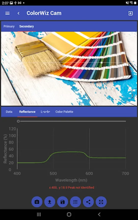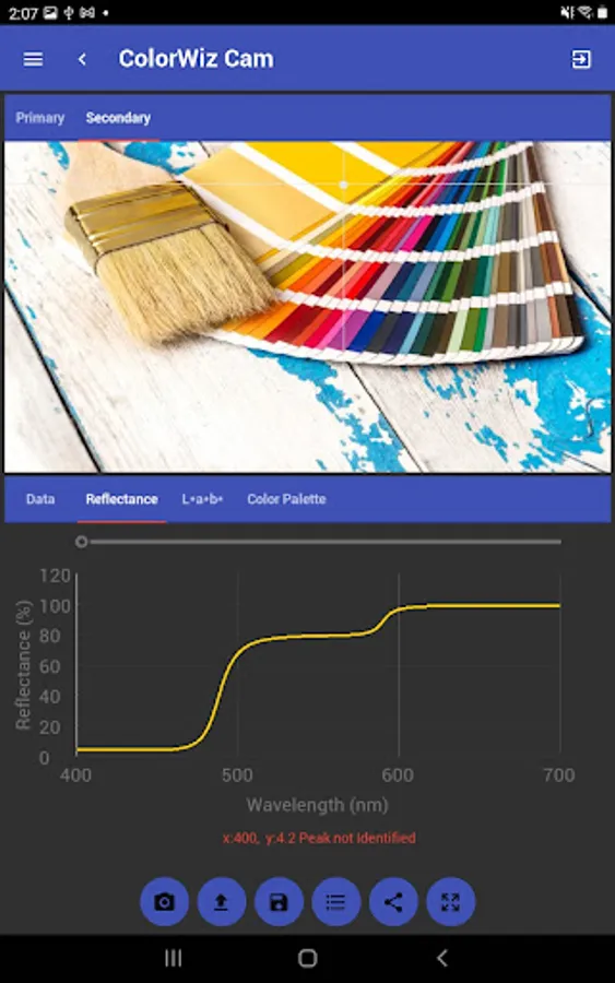 The ColorWiz Cam App makes real-time color measurement quick and easy using your camera phone. This intuitive app lets users take photos and make per pixel advanced color metrics, such as CIE L*a*b*, RGB, and even predicted reflectance spectra! Additional colorimetric analysis such as Chroma, Hue, Luminosity, SRM, Lovibond, & EBC is included. You can easily save a color reference(dE) and calculate color differences and compare with a 2nd photo. Save PDF color reports and share. Become your own color scientist today!