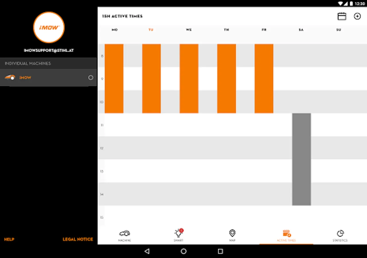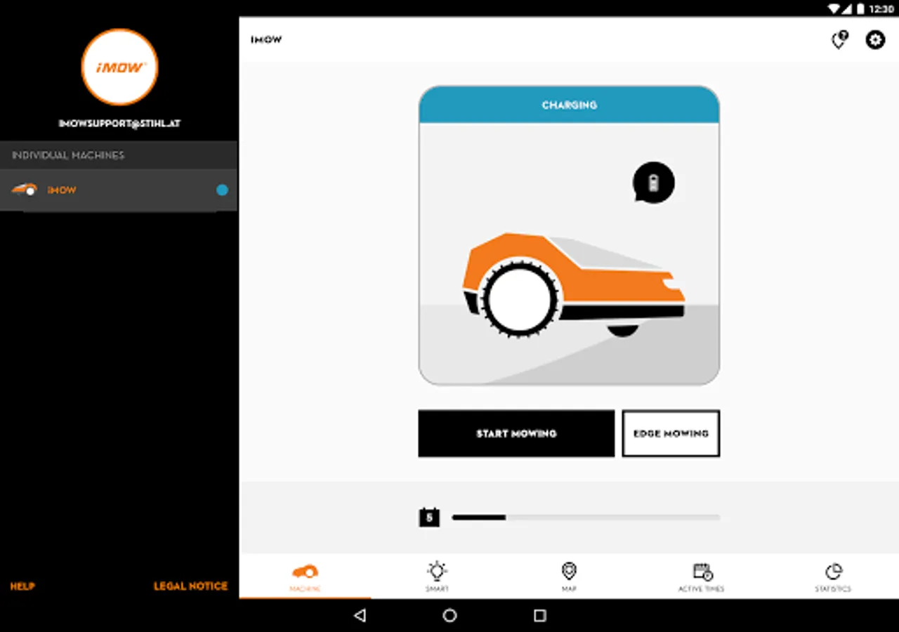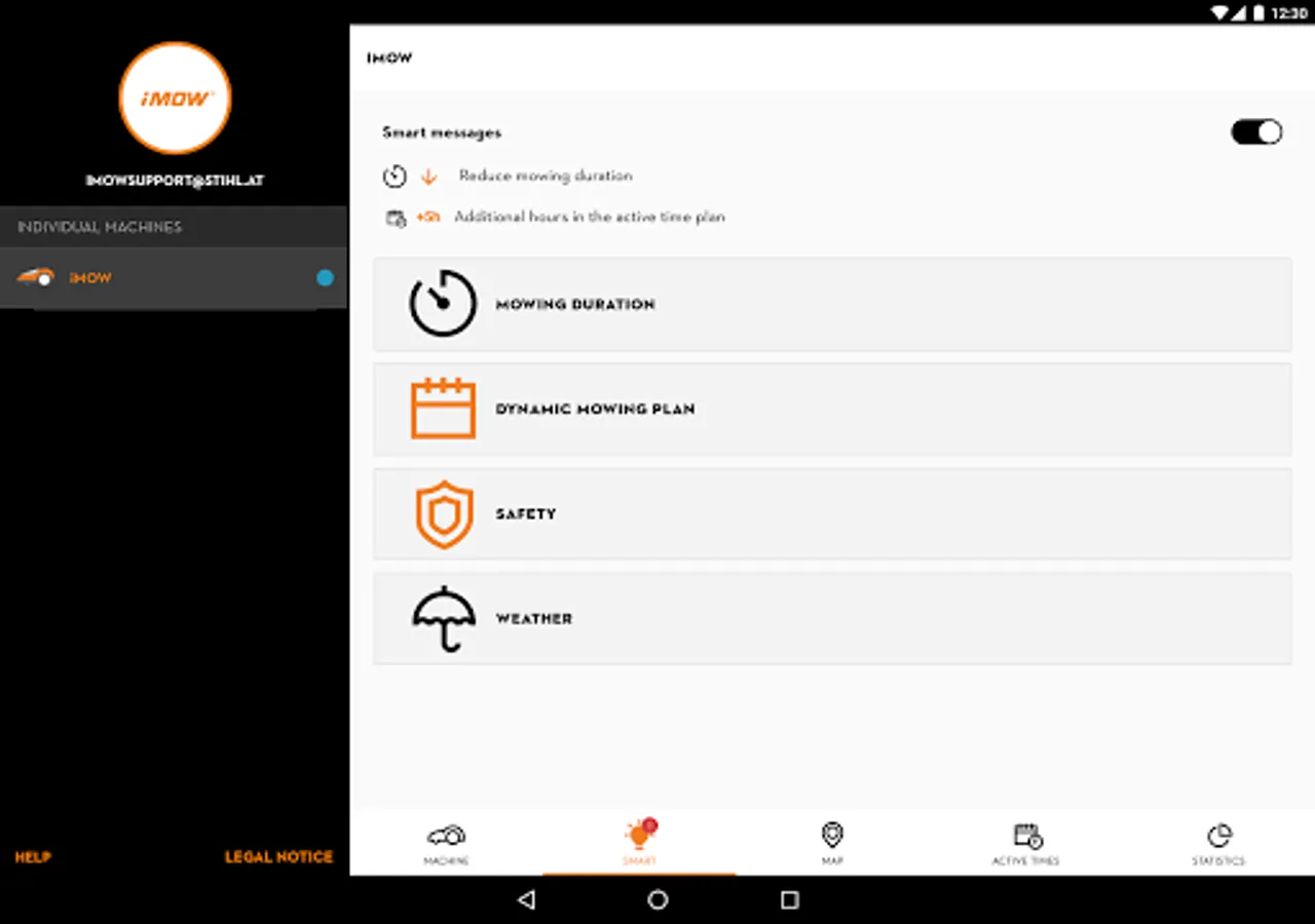 You can start the iMOW® robotic mower immediately, send it to the docking station, edit the active times, call up mowing statistics and much more.The intuitive user interface provides extremely easy and user-friendly operation.