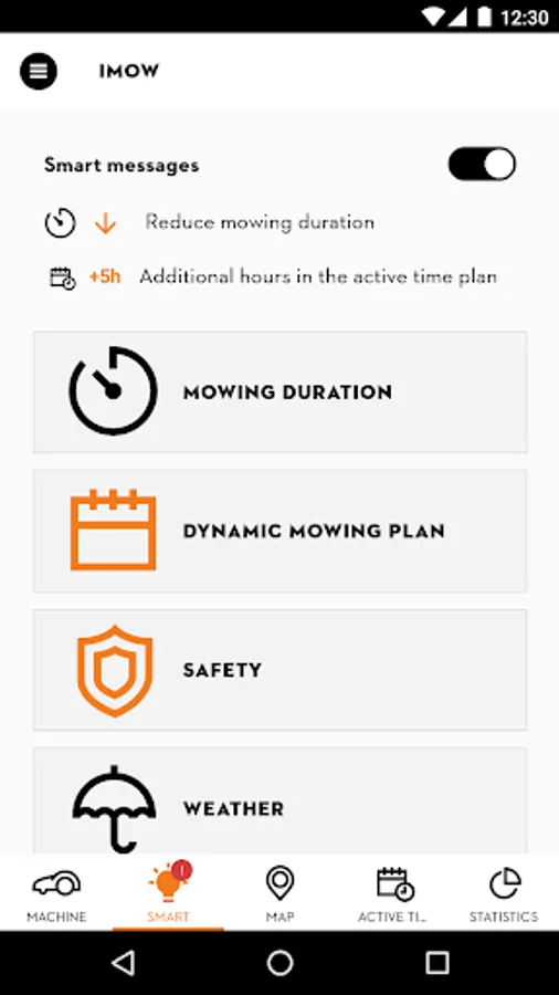 Customize the mowing duration from any location with your iMOW® app. Activate the dynamic mowing plan and have your iMOW® define the mowing duration itself.