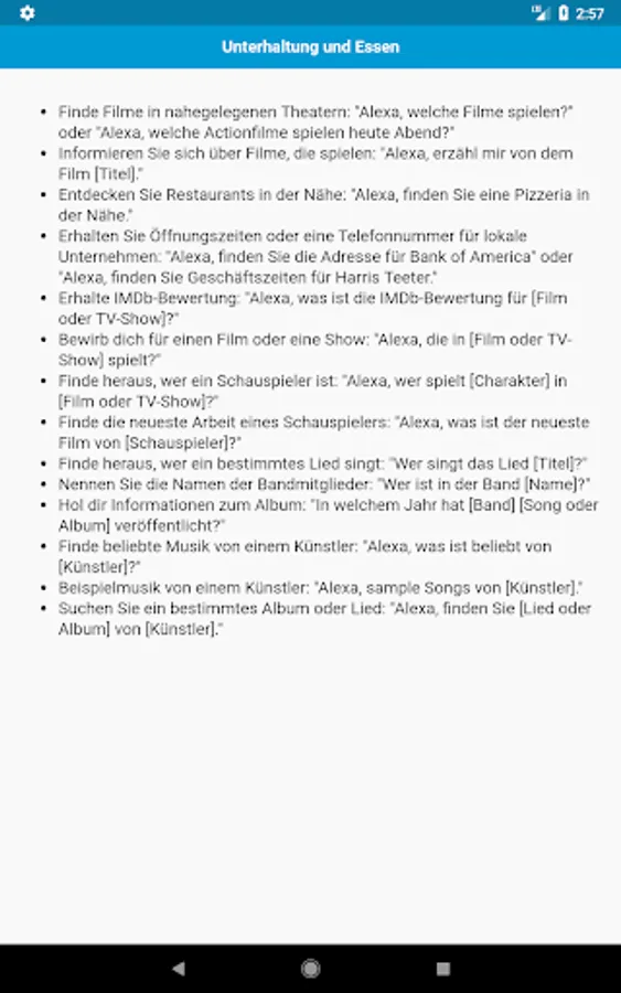 Commands for Amazon Echo in German language.