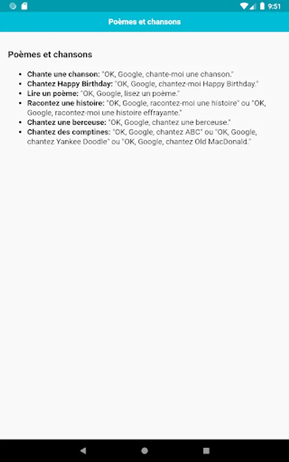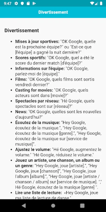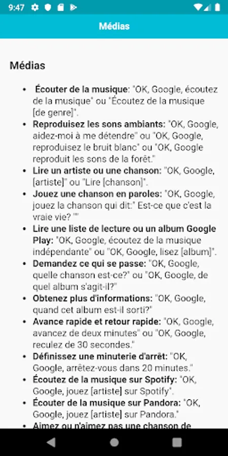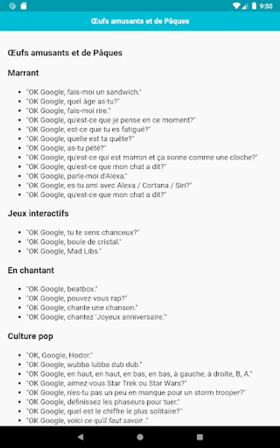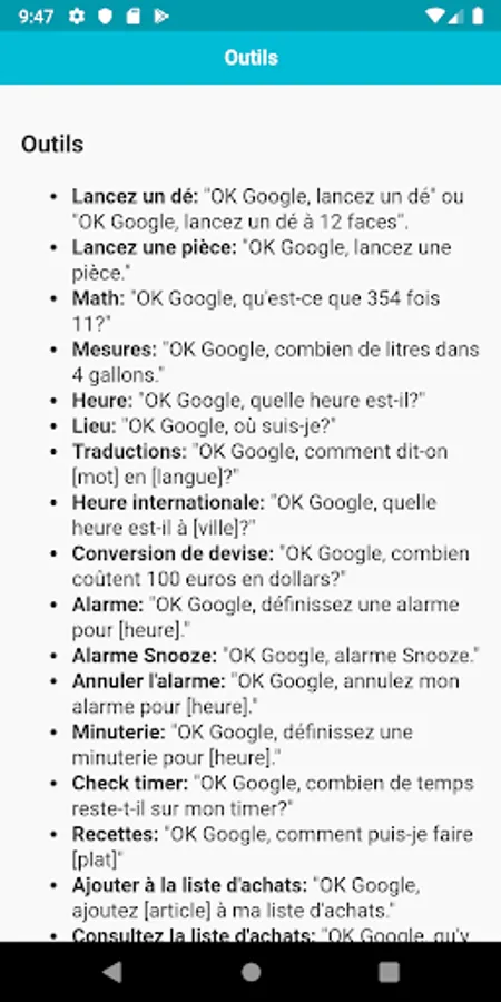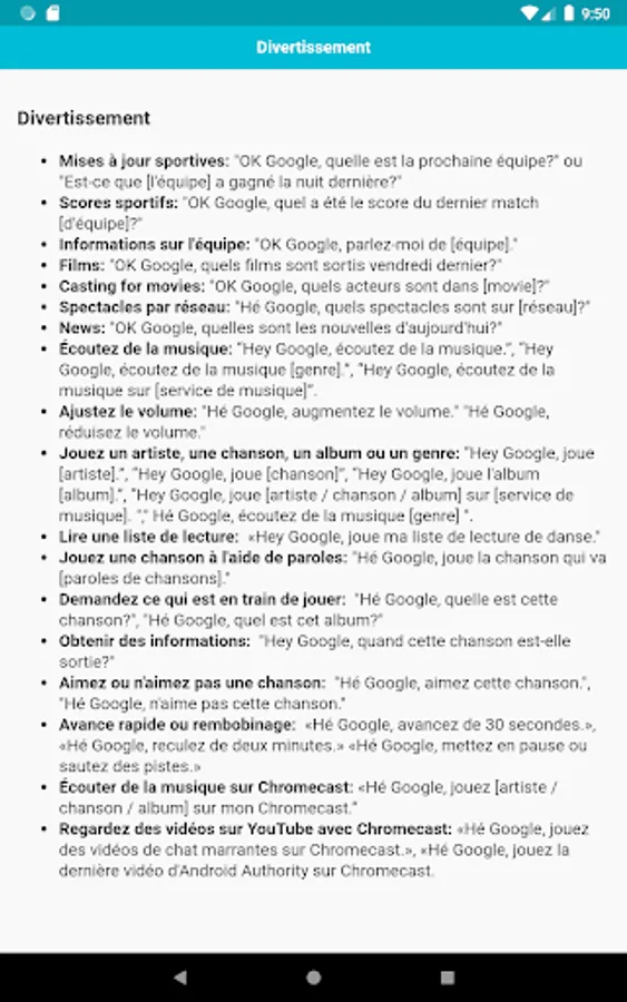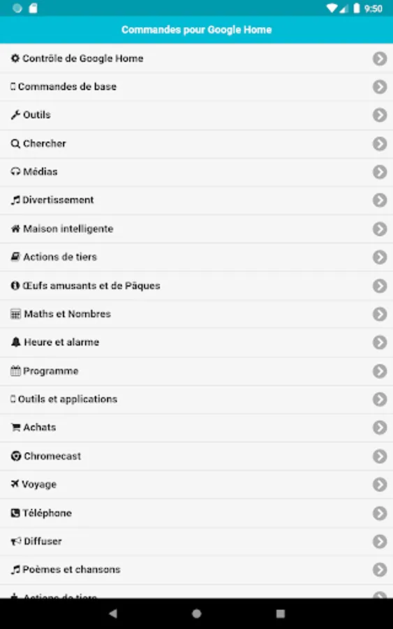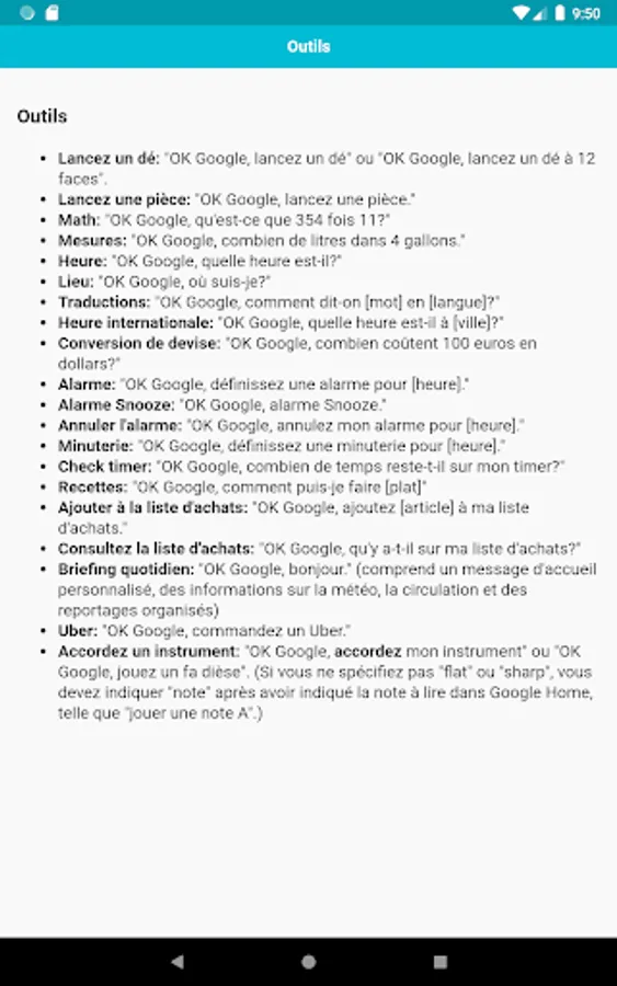 Cette application contient toutes les commandes que vous devez savoir. Les commandes sont classées par catégories, il sera donc plus facile pour vous de trouver des commandes.