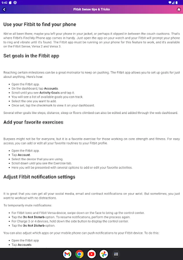 Get all the information you need to use your Fitbit Sense smartwatch. It is one of the best advanced smartwatch with tools for heart health, Stress management & skin temperature measurement. From this app you will get: