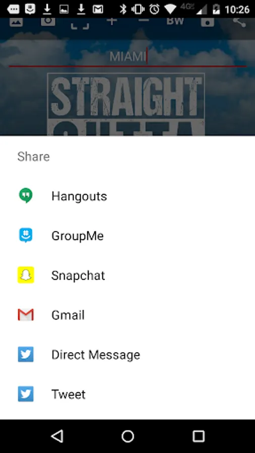 Type your text, choose between taking a photo on the spot, or one you have taken previously. Share to Facebook, Twitter, Instagram, Snapchat, or any other social media site. You now have the power to create your own "Straight outta" memes!