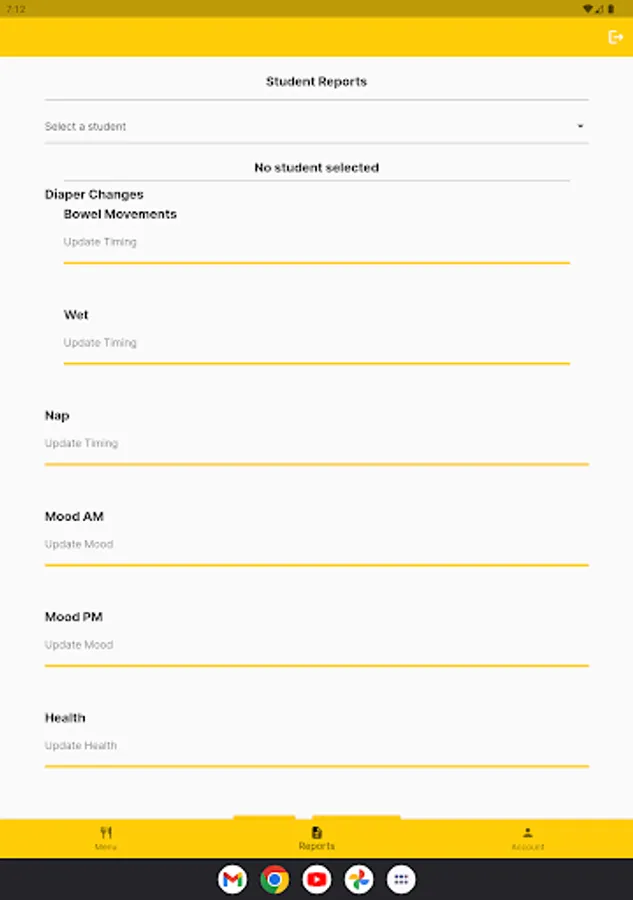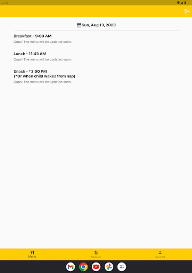 Created by Tippy Toes Daycare to provide communication regarding your student's daily updates. This includes updates on present and past menus as well as routine student activities.