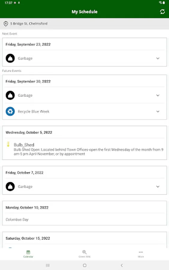 Search for waste materials to learn how they can be recycled, composted, or disposed of, in Town of Chelmsford. View the towns calendar events and set up reminders for yourself so you never miss a scheduled pick up again.