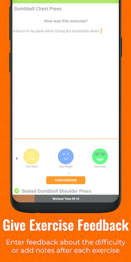 - Give feedback about the difficulty of an exercise and leave notes for your trainer