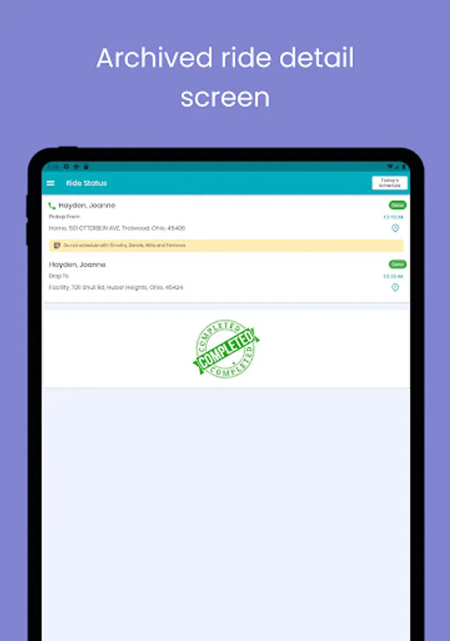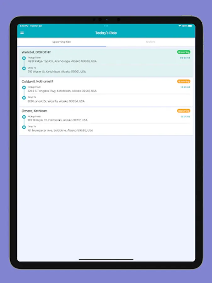 This app will be used by company Driver employees only. The purpose of this app to provide LIVE rides/dispatch details to driver and backend will be able to track rides status in the backend