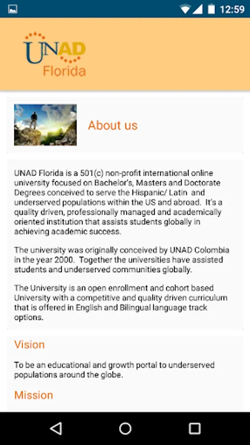 UNAD Florida offers students and individuals interested in joining our UNAD Family an app created to facilitate interaction with our campus and all the technological tools available to you to improve your E -learning experience with us.