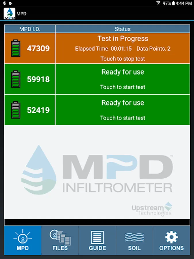 This APP is used to collect data from Upstream Technologies MPD infiltration data gathering heads and delivers it to the cloud to perform Hydraulic Conductivity (Ksat) calculations.