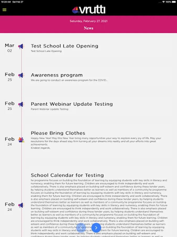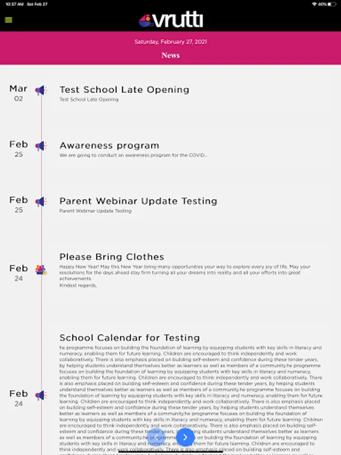 Vrutti app enables families to engage in their children's school through effective communication from the school management and class teachers.