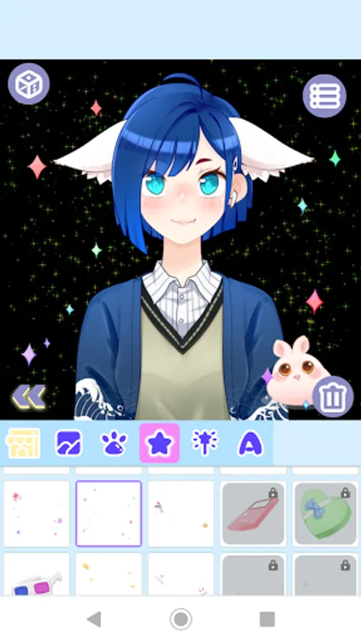 Wanna design a brand new cartoon or animation character of your own, this is the right game you are looking for. In this application, there are rich libraries of different eyes, eyebrows, mouths, hair styles of your desired color, beautiful clothes, accessories and pets. Under your fingertip control, you can create your favorite characters freely. This app is Support click action to select avatar parts. Move over, you can also share these figures with your friends.Come and experience the fun of Avatar and share with your friends! You won't be disappointed !