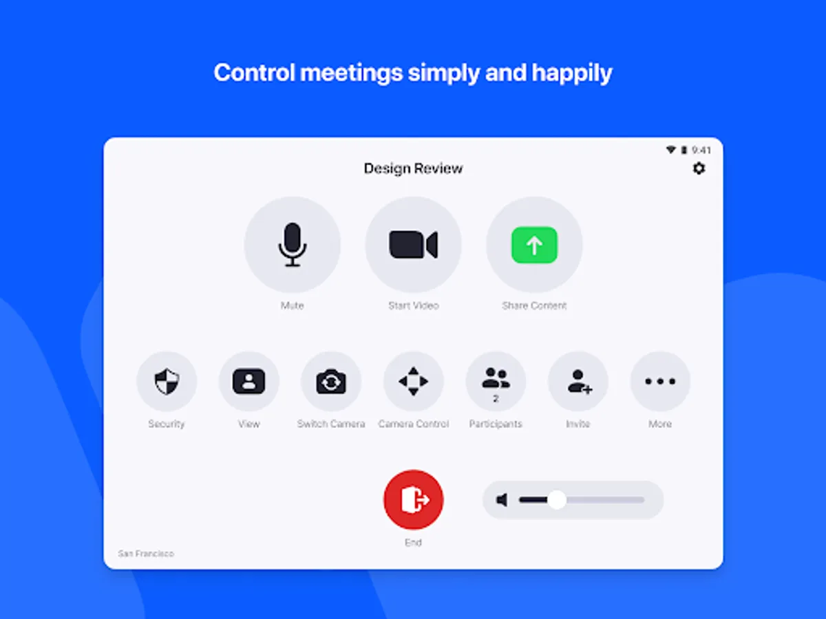 ● Intuitive room controls to easily manage audio, video, participants, and more
