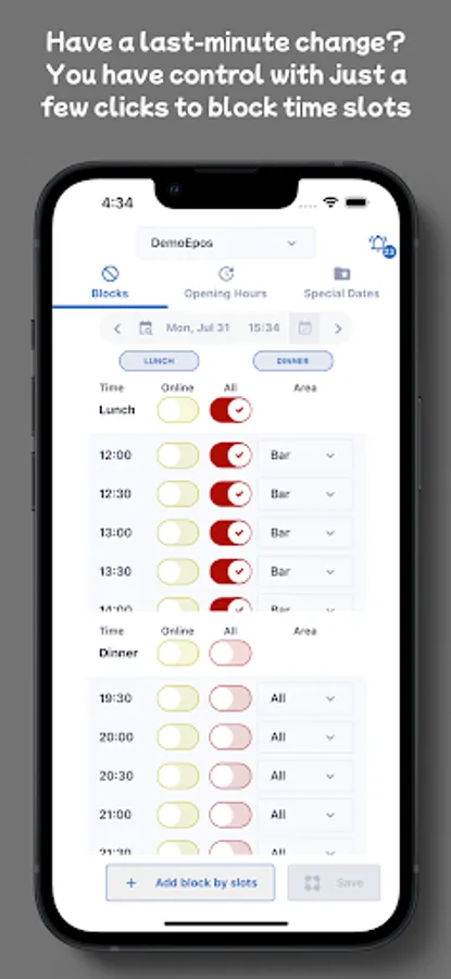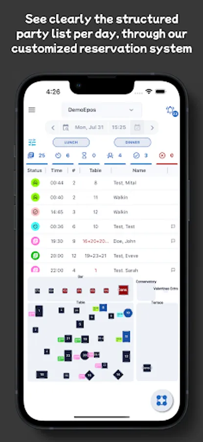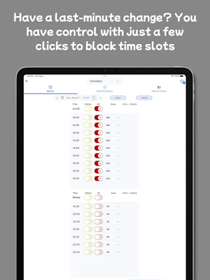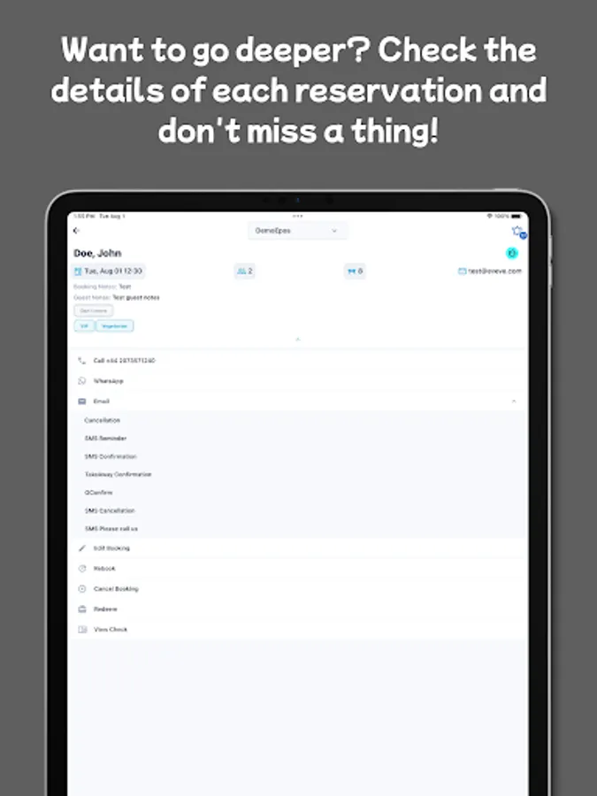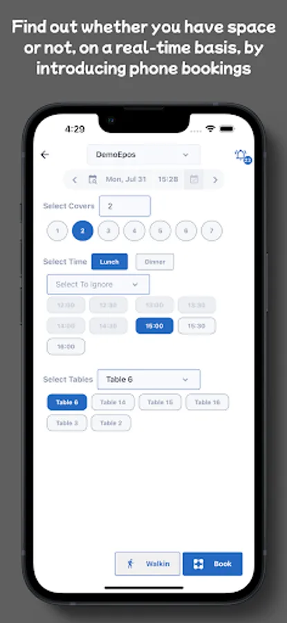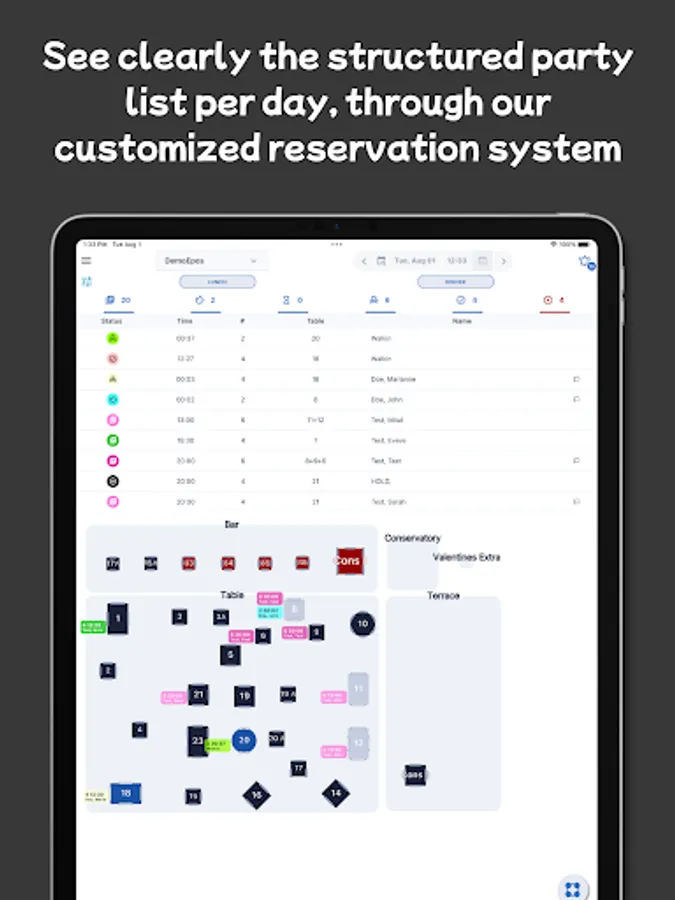 Eveve allows real time reservations, by coupling live online booking pages, with real time availability via a feed from the TELOS internal management system situated in the restaurant. The booking pages and TELOS table management allow instant reservations for guests, which: