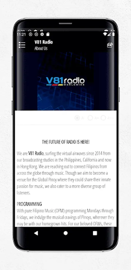 We are V81 Radio, a Filipino internet radio station based in California, USA and in the Philippines. We are reaching out to connect Filipinos from across the globe through music.