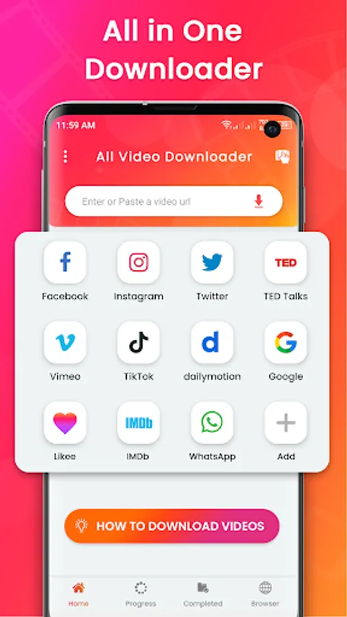 All video downloader fast Download Manager for Android is a utility tool that allows you to instantly save free videos. All vid videos downloads HD smartly download from your favorite websites and social media accounts with simple steps from descargar videomp4.