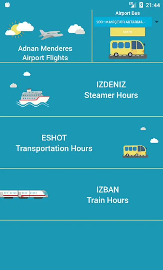 All information on transportation vehicles in Izmir in the pocket. ESHOT Bus times, IZDENIZ ferry and car ferry hours, IZBAN train hours, Adnan Menderes Airport flight information and airport bus services can be reached easily with this application. Alsancak, Bostanli, Goztepe, Karsiyaka, Konak, Passport and Uckuyular sea transport are listed separately on weekdays, Saturdays and Sundays. Narlıdere, Konak, Uckuyular, Buca, Bornova, Beydag, Bergama, Bayraklı, Bayindir and many bus times easily view. Check the availability of bicycles and disabilities on buses.
