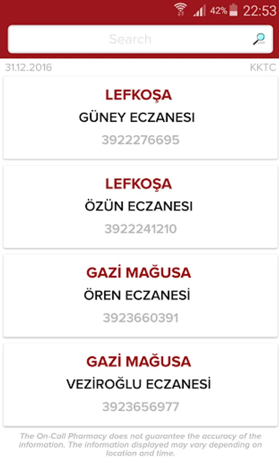 The pharmacies in TRNC is in your pocket with this application. You can easily access the pharmacies and telephone information in Lefkoşa, Gazi Muğasa, Girne ve Güzelyurt.