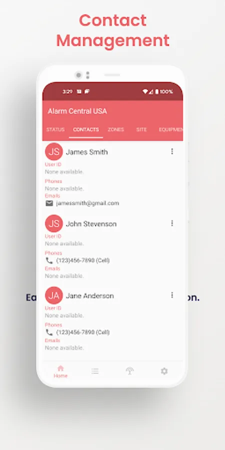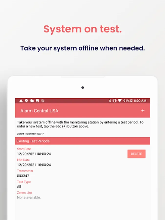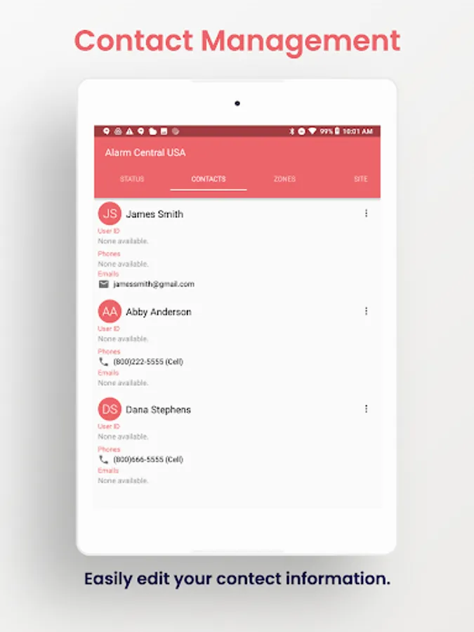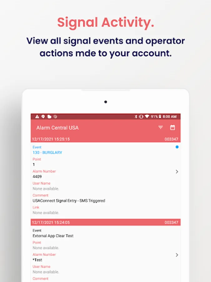 Alarm Central USA is an app for end users of alarm systems that are monitored by USA Central Station. Securely login, check system status, view contacts, edit contact phones and emails, view zones, site information, equipment, view all signal activity, place the system offline (test mode) and delete test periods.