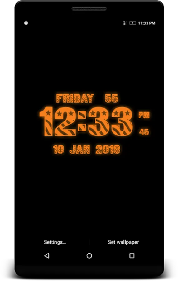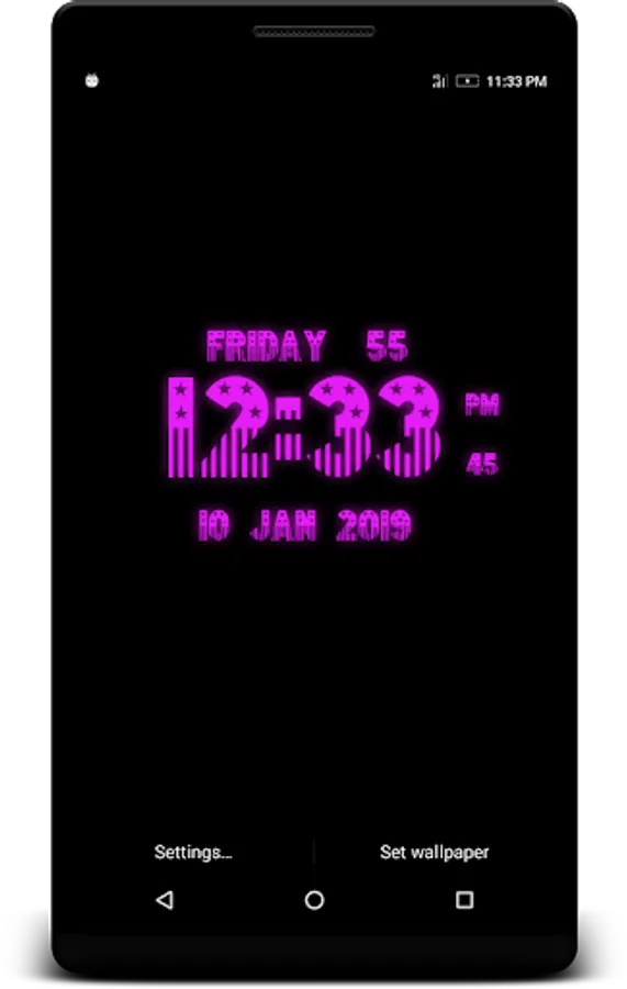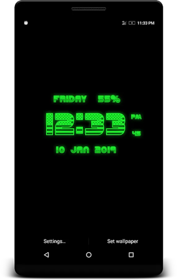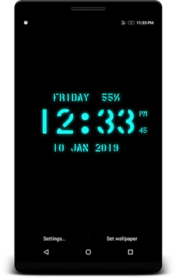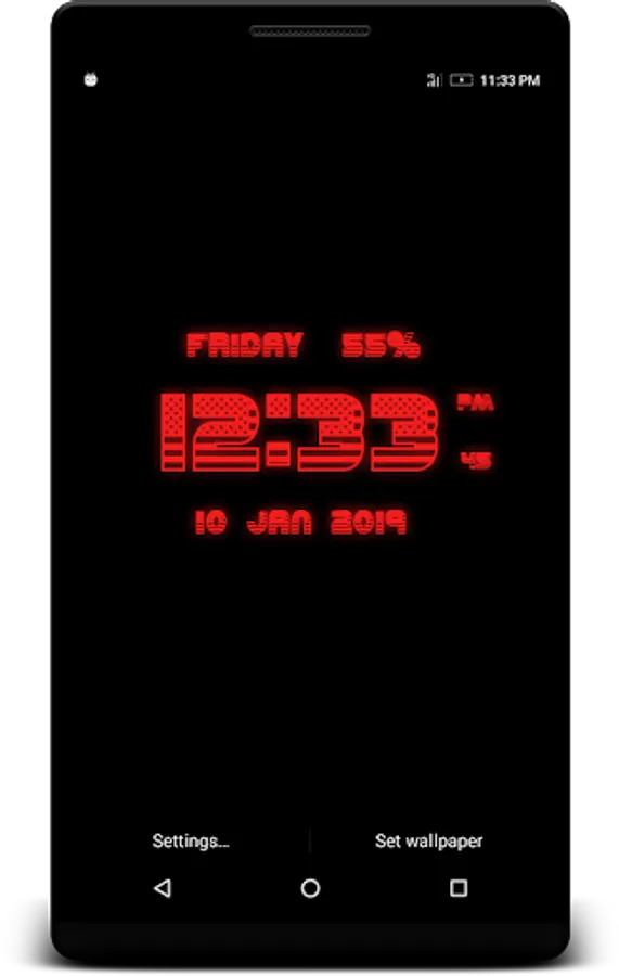 USA Digital Clock Live Wallpaper that displays current time, date and day of the week. All date and time formats are supported.
