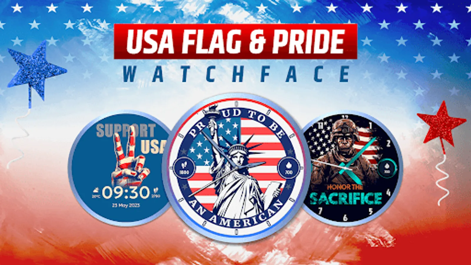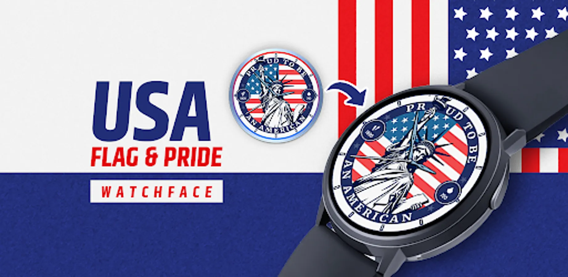 Want to showcase your love and support for the United States of America on the Wear OS smartwatch? Look no further! The USA Flag & Pride Watchface app is an ultimate patriotic theme timekeeper app.