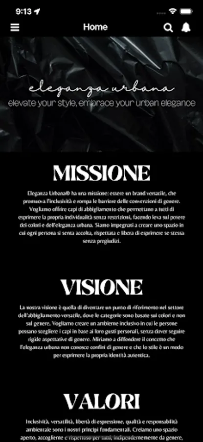 Discover the collections of Eleganza Urbana® the app that brings the essence of Italian elegance to your device! Our 100% Made in Italy brand celebrates sophisticated style and timeless comfort with high quality cotton products. We are an inclusive brand that overcomes gender barriers by organizing our items by colors rather than by men/women. Explore the nuances of fashion and create your own personalized look with a rewarding shopping experience. Access our complete collection receive notifications on the latest trends and updates and enjoy excellent customer service. In addition, you will receive discounts and shopping vouchers that you can use to make your shopping experience more comfortable. Choose the uniqueness and quality of Eleganza Urbana, the reference app for your shopping. Download it today and discover our collections.