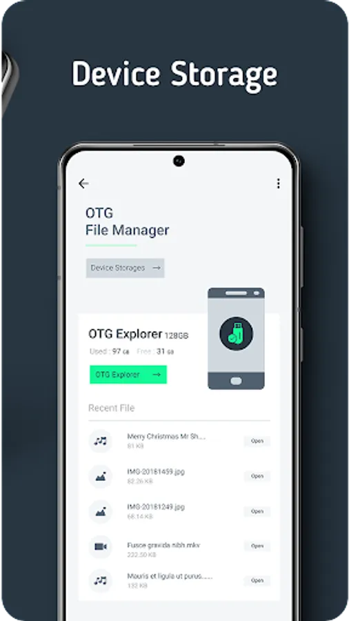 USB Connector or OTG Connector Software For Android and USB OTG Explorer - OTG File Manager allows you to manage files from any USB mass storage device using the USB OTG port of your device, tablet or phone.