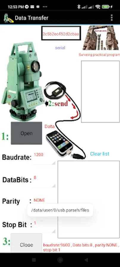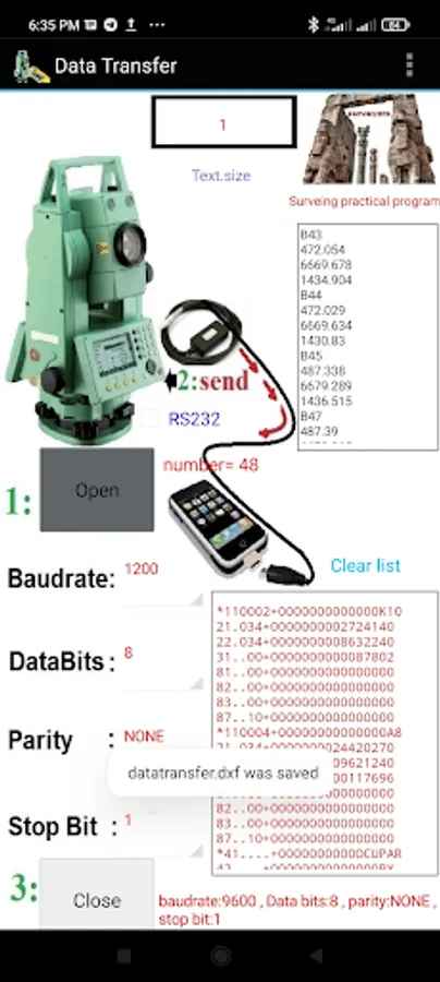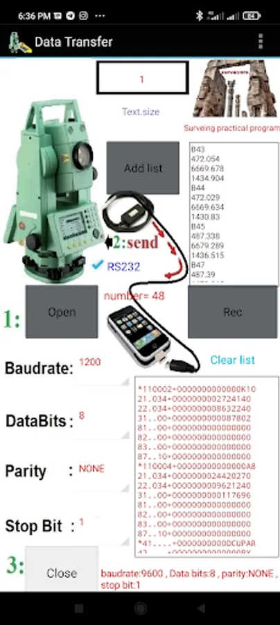 You can read help menu and use app. When you transfer data to your mobile then you can use other apps to control the tunnel ,cut and fill ,draw plan , Topography , section , 3d picture in autocad , Travese , ..