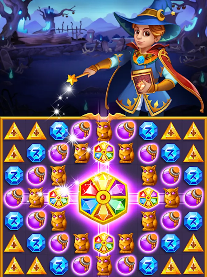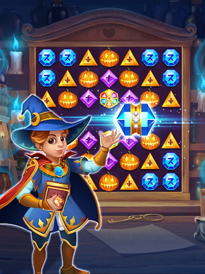 Join and play this fun filled witch game and experience the magical witch world. Explore all the fun levels and run through your adventurous journey by completing witch puzzles with your strategic moves.