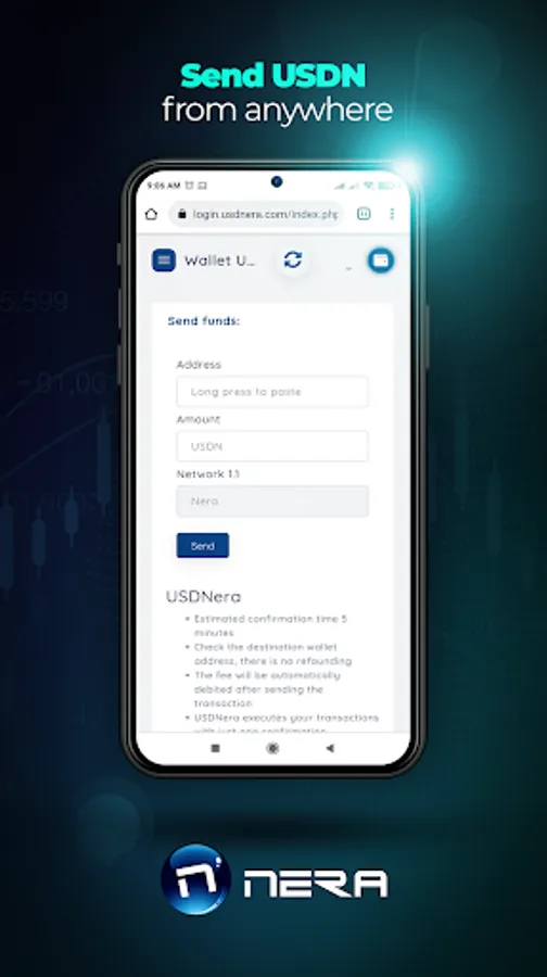 A stablecoin USDNERA Nera (USDN) Wallet that allows you to save, send USDNera, receive USDNera and buy USDNera, focused on security and simplicity.