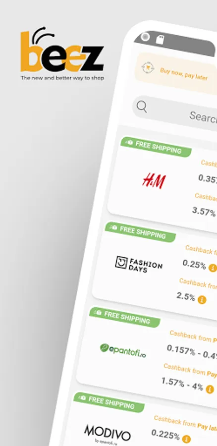 Moreover, you can pay your online purchases only after you receive them and enjoy your products. You order the product, but you can pay for it later, in 2 or 4 installments, with no additional cost. Among with this benefit, any order placed with Beez brings you an amount of cashback returned into your account.