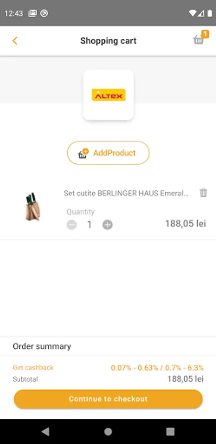 5. After you added the products, you can choose to pay them right there, or during a 60-days time period. Afterwards, you checkout the order and the cashback amount will appear pending until you will pay in fully the order.