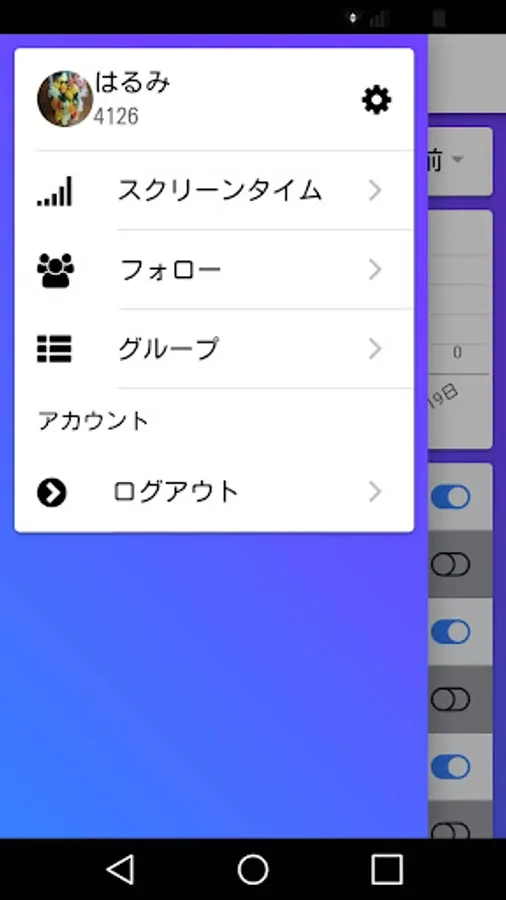 You can see the screen time of users who are following each other from here. ※ You can not follow each other's screen time (or a group described later).