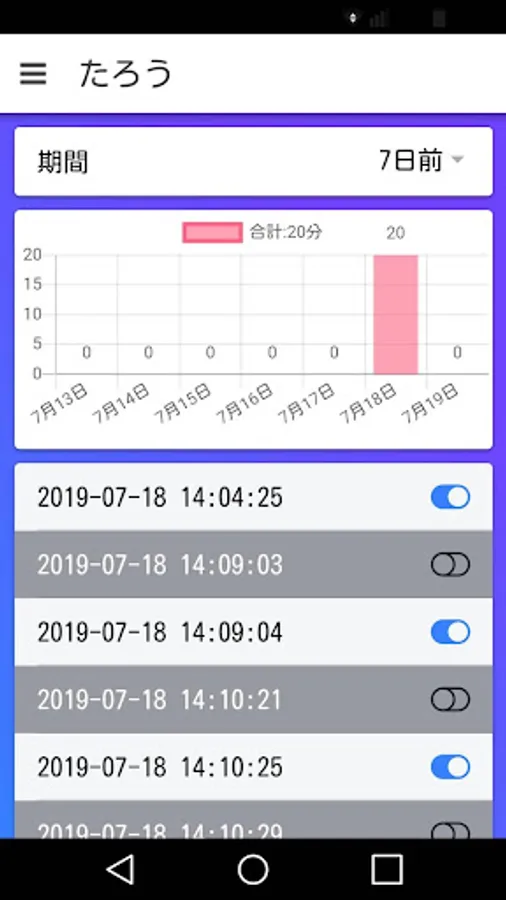 Display graph of smartphone screen on time. Press [Period] to change the graph display time.
