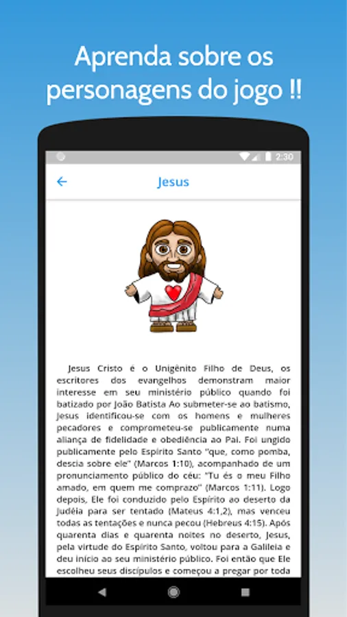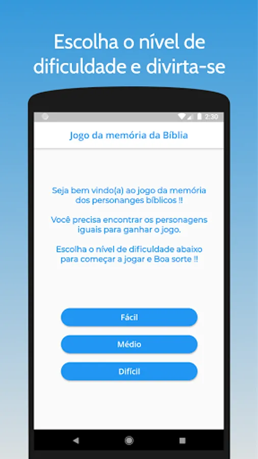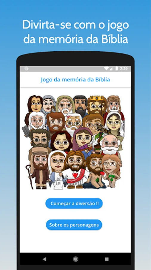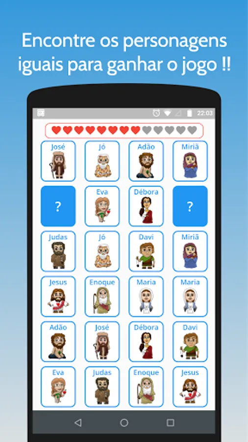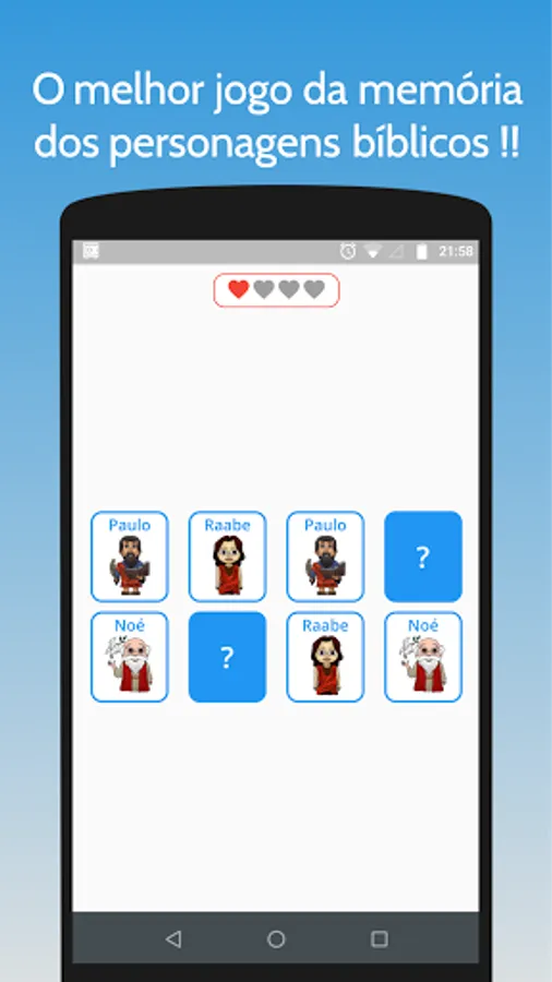 There are 3 different levels of difficulty for you to train your memory while having fun with the characters from the bible !!