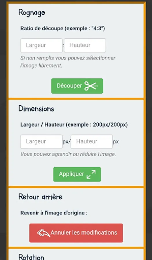 With CropMyImg, you can select part of an image for the cut. You can cut in a precise selection ration, or with a free selection. You can also enlarge or reduce the image to your liking. Finally you can download the image to the desired size, with the ability to convert your image to PNG, JPEG or BMP.