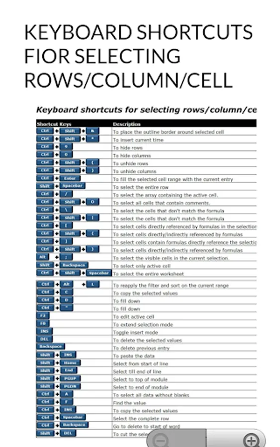 we provide windows shortcuts,Excel shortcuts with image zooming option to enlarge the shortcuts easy