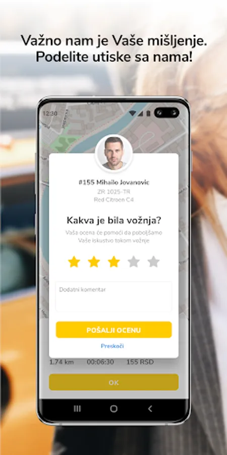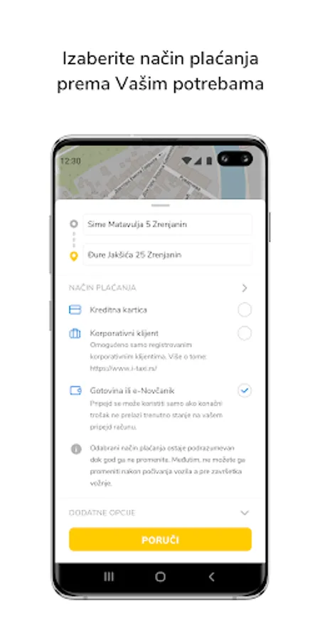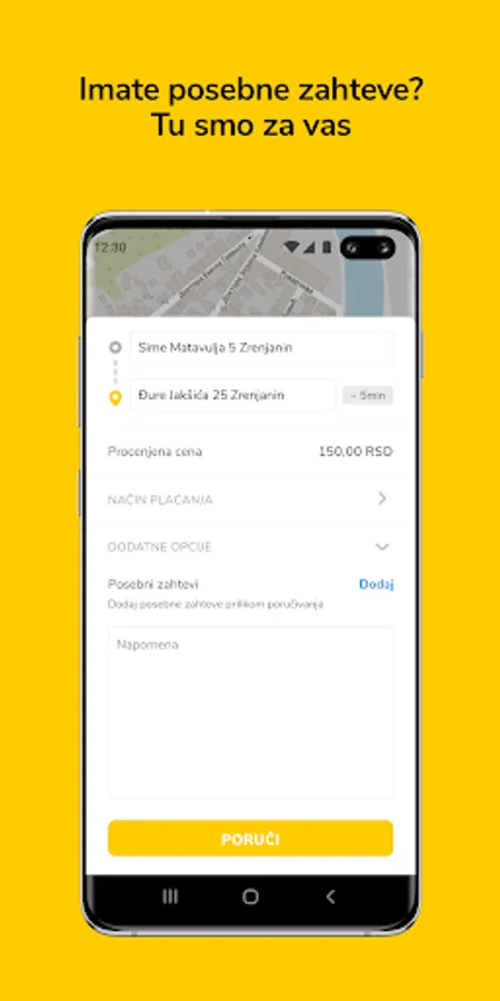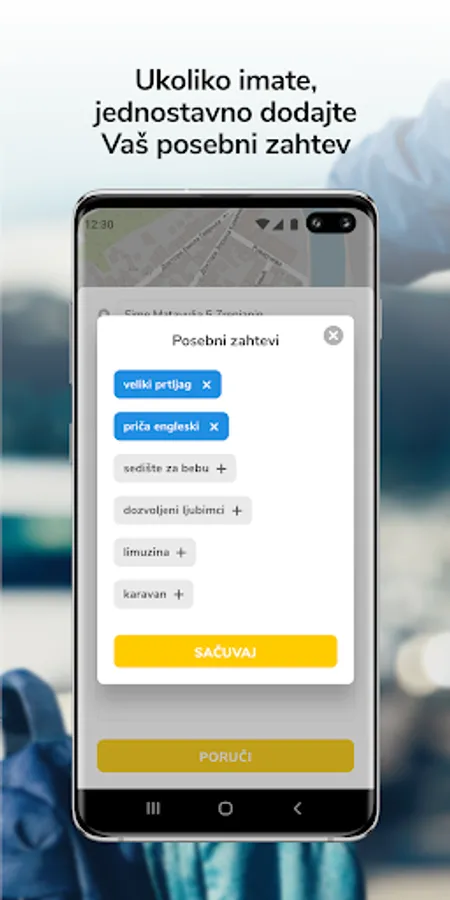 Through the application, you can determine your additional requirements for choosing a taxi vehicle and service (larger trunk, larger vehicle, pet transportation, etc.).