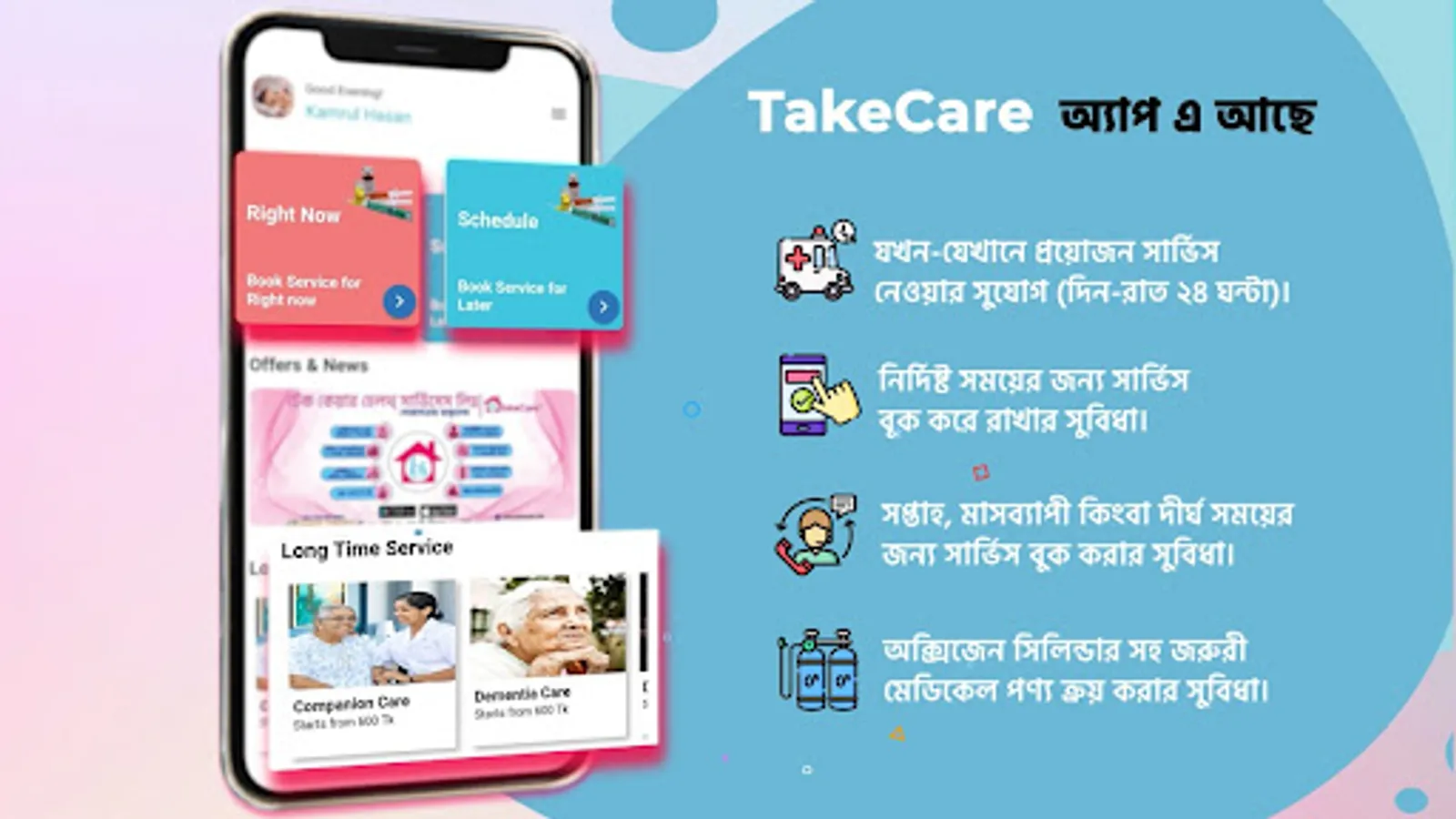 TakeCare is a registered & government approved Home Based Healthcare Platform. We are providing necessary healthcare at doorstep to our patient as their requirements.