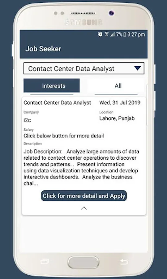 Jobs of all categories, from basic to middle management & top management, including different industries, i.e. education, technology, health, textile, etc. can be easily searched & reached through Job Seeker app.