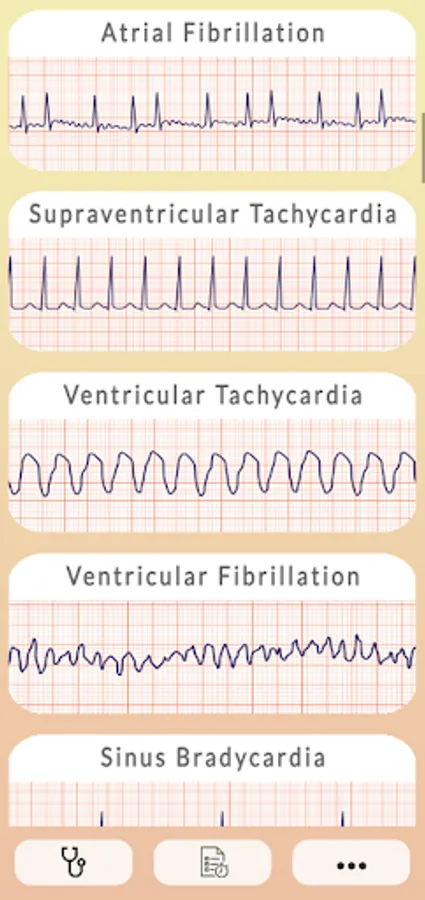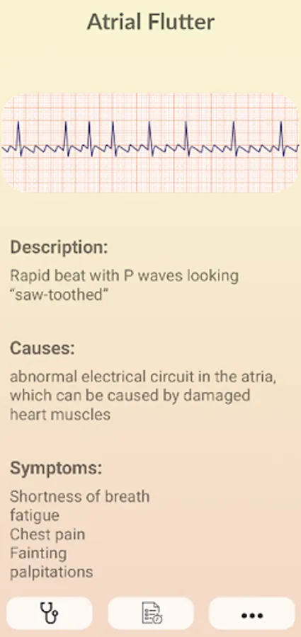 The app lets you compare the normal appearance of an ECG with all abnormalities, like Ventricular fibrillation, Atrial flutter, or heart block.