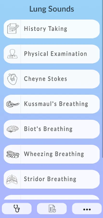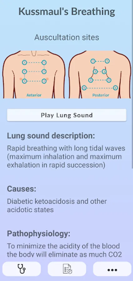 Listen to all lung diseases and learn the causes. Each section contains a lung pathology (e.g. Cheyne–Stokes), the sound it produces, the causes, and the treatment.