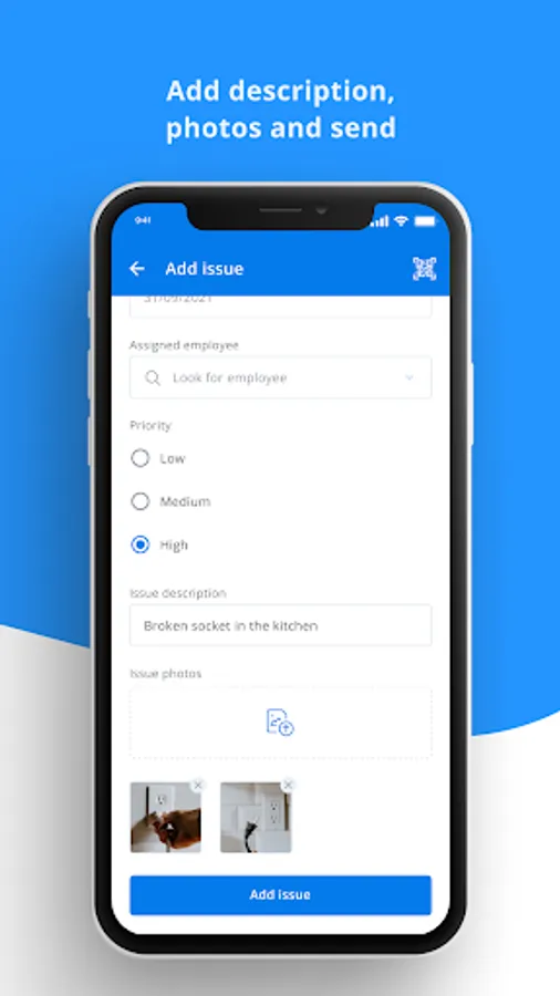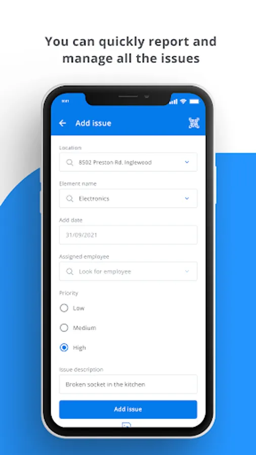 Instant reporting - select an item from the list or scan its QR code - report a malfunction in seconds!