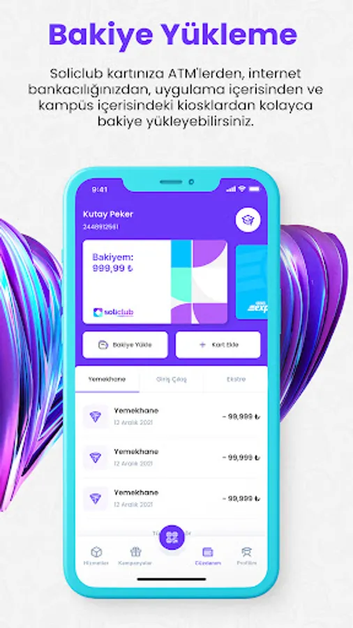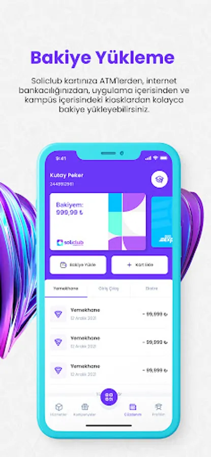 SoliClub is a mobile application that allows university students to use all systems on the campus, such as turnstiles, access control, cafeteria payments, without the need to carry their physical school ID cards, and also provides many advantages outside the campus.