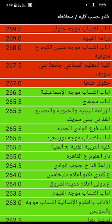 * Knowing which colleges are allowed by color classification (red -> a grade above your grade; green -> a grade below your grade)